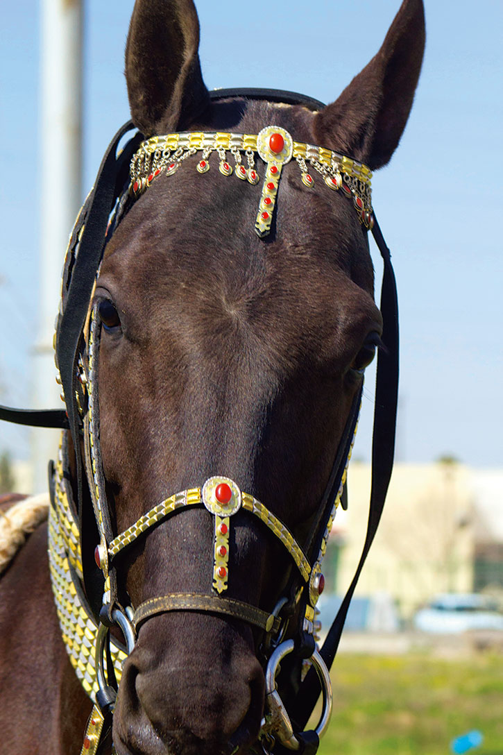 Те, кто впервые знакомится с традициями туркменского коневодства, не могут не заметить особого, трогательного и нежного, отношения народа к своему национальному символу. Эта любовь помимо всего прочего отражается и в древнейшей традиции богато украшать лошадь: бриллианту должна соответствовать и драгоценная оправа. Богато расшитые ковровые и войлочные попоны и подседельники, полудрагоценные камни и филигранная выделка серебряного обрамления сбруи – все это, являясь предметом высокого национального искусства, изящно подчеркивает красоту и стать туркменских коней.