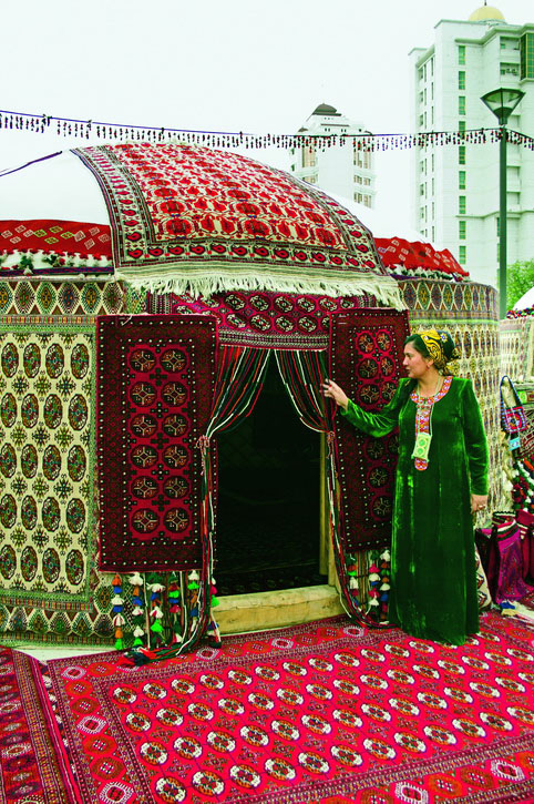 Туркменская юрта поражает разнообразием способов изготовления, а орнаментация предметов ее убранства соперничает с красотой и яркостью красок природы. Переносная сборная юрта идеально соответствовала основному принципу кочевой жизни: все свое ношу с собой. Для перевозки этого сравнительно компактного и легкого дома требуются два-три верблюда или три-четыре лошади.